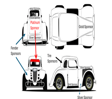In addition to the advertising on all three race cars, all sponsorship packages include brand placement on both team trailers, social media content mentioning your company and/or products, and exposure through streaming broadcasts of select races.