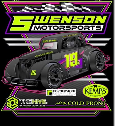Team sponsorships will also include your logo on all swag for Swenson Motorsports for the year. (Single Car Support may be upgraded to include logo on swag for an additional $100.)